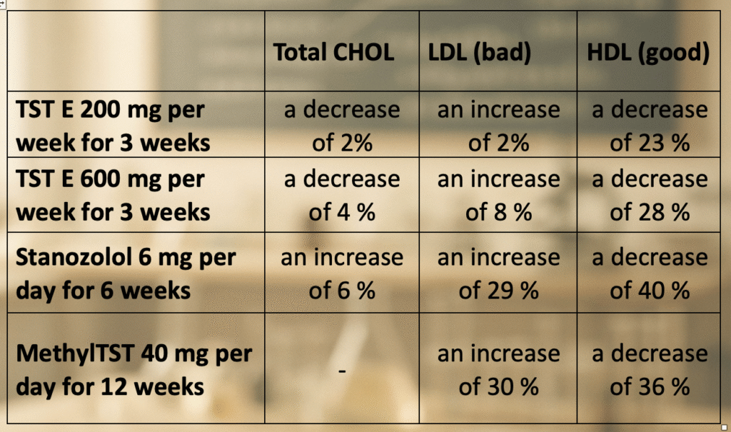 We know that AAS have a significant impact on cholesterol levels. This effect is seen mainly with oral AAS, although injectable forms also influence cholesterol — just not as strongly as the oral ones.